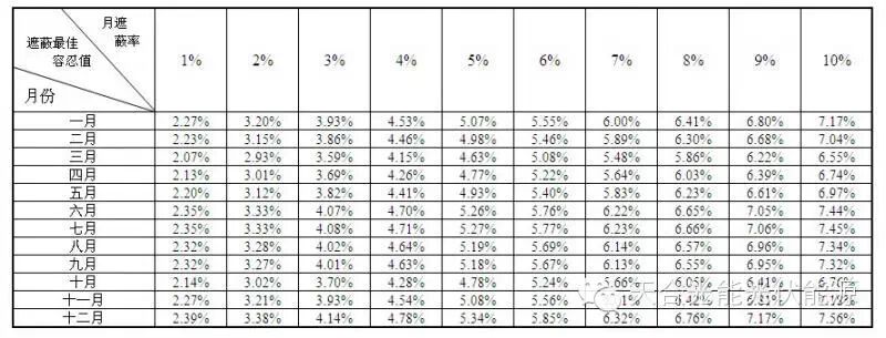 表3 不同月份不同月遮蔽率對應的遮蔽最佳容忍值