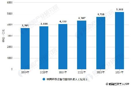 2019-2024年中國環(huán)保設(shè)備行業(yè)銷售收入統(tǒng)計情況及預(yù)測。數(shù)據(jù)來源:前瞻產(chǎn)業(yè)研究院整理