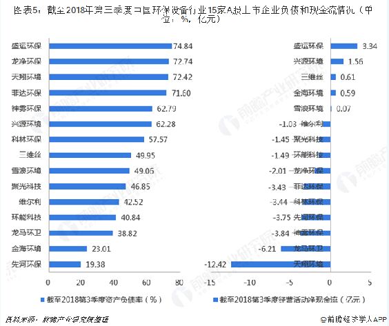神霧環(huán)保債務(wù)危機(jī)并非個(gè)案,行業(yè)整體面臨資金吃緊問(wèn)題 事實(shí)上,神霧環(huán)保做面臨的資金鏈緊張并非其一家獨(dú)有,2018年整個(gè)環(huán)保設(shè)備行業(yè)均面臨發(fā)展資金不足,舉債規(guī)模偏高的問(wèn)題。截至2018年9月30日,有近50%的公司資產(chǎn)負(fù)債率超過(guò)了60%,高于健康合理的安全水平;此外,近70%的公司經(jīng)營(yíng)活動(dòng)凈現(xiàn)金流為負(fù)值,可見(jiàn)環(huán)保設(shè)備行業(yè)大部分公司面臨資金緊張的困境。