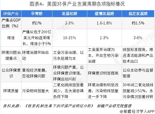 歷經(jīng)波折后,美國環(huán)保產(chǎn)業(yè)已經(jīng)進(jìn)入穩(wěn)定發(fā)展期 19世紀(jì)以來,工業(yè)革命為美國經(jīng)濟(jì)的騰飛奠定了堅(jiān)實(shí)基礎(chǔ),1920-1970年鑒,美國的全要素生產(chǎn)率達(dá)到了歷史高峰。而環(huán)境問題與經(jīng)濟(jì)發(fā)展如影隨形,和其他發(fā)達(dá)國家一樣,美國同樣經(jīng)歷了“先污染,后治理”的過程。美國環(huán)保發(fā)展歷程分為四個階段:孕育期、發(fā)展初期、緩慢發(fā)展期、穩(wěn)定增長期。 第一階段:孕育期(20世紀(jì)70年代之前),在工業(yè)化及經(jīng)濟(jì)快速增長初期,美國一開始對環(huán)境問題的重視程度也較弱,環(huán)境污染問題處于累積階段。但隨著19世紀(jì)中葉出現(xiàn)的多諾拉二氧化硫事件、洛杉磯光化學(xué)污染事件等的出現(xiàn),環(huán)境污染問題開始顯露。 第二階段:發(fā)展初期(1970-1980年),在民眾對生活環(huán)境要求提高和重大污染事件爆發(fā)的背景下,美國環(huán)境法體系建立,聯(lián)邦介入污染控制,國家政策高度重視環(huán)保,環(huán)境質(zhì)量持續(xù)改善。 第三階段:緩慢發(fā)展期(1981-1989年),里根任期國家發(fā)展重心主要是振興經(jīng)濟(jì),環(huán)境質(zhì)量略有放松;這一階段經(jīng)濟(jì)快速發(fā)展,環(huán)境治理速度跟不上經(jīng)濟(jì)發(fā)展的速度,環(huán)境惡化。 第四階段:穩(wěn)定增長期(20世紀(jì)后半葉-至今),美國環(huán)保法案不斷修訂、完善,細(xì)化到海洋、大氣、固廢、水等個領(lǐng)域,各行業(yè)污染排放標(biāo)準(zhǔn)也陸續(xù)建立,環(huán)境污染問題極大改善。 綜上,美國的經(jīng)濟(jì)發(fā)展情況和環(huán)境污染情況也是符合環(huán)境庫茨涅茲曲線的特征,一開始,環(huán)境污染問題與經(jīng)濟(jì)發(fā)展正相關(guān),在經(jīng)濟(jì)水平增長到穩(wěn)定期后,著手環(huán)境治理和環(huán)境監(jiān)測,逐漸解決環(huán)境污染問題。