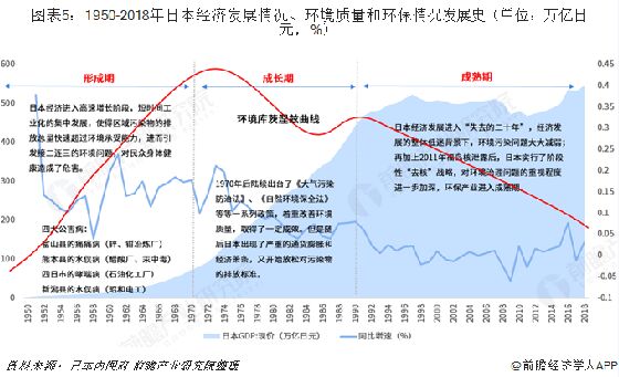 日本克服多種環(huán)境污染問題后,環(huán)保產(chǎn)業(yè)進(jìn)入成熟期 日本是亞洲國家中最先進(jìn)入發(fā)達(dá)國家行列的國家,其環(huán)境問題也是“走了先污染,后治理”的老路。日本環(huán)保產(chǎn)業(yè)也歷經(jīng)了三個階段:形成期、成長期和成熟期。 第一階段:形成期(1950-1970年),日本經(jīng)濟(jì)進(jìn)入高速增長階段;1968年,日本經(jīng)濟(jì)便僅次于美國,占據(jù)了資本主義國家中的第二名;期間,日本依靠技術(shù)的引進(jìn)和工業(yè)設(shè)備的更新,快速而有效地推動了工業(yè)現(xiàn)代化進(jìn)程,鋼鐵、交通、機(jī)械、石油化工、家電制造等產(chǎn)業(yè)實(shí)現(xiàn)了騰飛。但也是這種短時間工業(yè)化的集中發(fā)展,使得區(qū)域污染物的排放總量快速超過環(huán)境承受能力,進(jìn)而引發(fā)接二連三的環(huán)境問題,對民眾身體健康造成了危害,如四大公害病:富山縣的痛痛病(鋅、鉗冶煉廠),熊本縣的水俁病(醋酸廠、汞中毒),四日市的哮喘病(石油化工廠),新潟縣的水俁病(昭和電工)。 第二階段:成長期(1971-1990年),在工業(yè)發(fā)展帶來了一系列危害后,1967年政府就制定了《公害對策基本法》,1970年后又陸續(xù)出臺了《大氣污染防治法》、《自然環(huán)境保全法》等等一系列政策,著重改善環(huán)境質(zhì)量,取得了一定成效。但是隨后日本出現(xiàn)了嚴(yán)重的通貨膨脹和經(jīng)濟(jì)蕭條,又開始放松對污染物的排放標(biāo)準(zhǔn)。 第三階段:成熟期(1991-至今),日本經(jīng)濟(jì)發(fā)展進(jìn)入了“失去的二十年”的階段,經(jīng)濟(jì)發(fā)展的整體低迷背景下,環(huán)境污染問題大大減弱;再加上2011年“福島核泄露”事件后,日本實(shí)行了階段性“去核”戰(zhàn)略,對環(huán)境治理問題的重視程度進(jìn)一步加深,環(huán)保產(chǎn)業(yè)進(jìn)入成熟期。