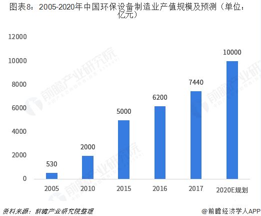 環(huán)保設(shè)備制造業(yè)高速發(fā)展,2020年產(chǎn)值將達(dá)萬億 環(huán)保裝備制造業(yè)是環(huán)保產(chǎn)業(yè)的重要組成部分,是保護(hù)環(huán)境的重要技術(shù)基礎(chǔ),是實(shí)現(xiàn)綠色發(fā)展的重要保障。近年來,隨著環(huán)境污染形勢日益嚴(yán)峻,國家加快了大氣污染防治、水污染治理、土壤污染修復(fù)等方面政策的出臺,而更為嚴(yán)格的污染物排放和治理標(biāo)準(zhǔn),為新增和升級改造現(xiàn)有的環(huán)保設(shè)備提供更為廣闊的市場空間。 環(huán)保產(chǎn)業(yè)營業(yè)收入與GDP的比值已由2004年的0.37%增長到2017年的1.63%,對國民經(jīng)濟(jì)增長的直接貢獻(xiàn)率從0.3%上升到2.4%。數(shù)據(jù)顯示,近年來,在政策支持和市場需求的雙輪推動下,我國環(huán)保裝備制造業(yè)實(shí)現(xiàn)了快速的發(fā)展,2010-2017年行業(yè)年復(fù)合增速達(dá)20.6%。2018年,污染防治領(lǐng)域(環(huán)保設(shè)備制造和環(huán)境服務(wù)業(yè))營業(yè)收入約1.5萬億元,較上年增長約11.1%。此外,2017年10月,工信部發(fā)布《關(guān)于加快推進(jìn)環(huán)保裝備制造業(yè)發(fā)展的指導(dǎo)意見》提出,2020年環(huán)保裝備制造業(yè)產(chǎn)值達(dá)到10000億元的目標(biāo)。