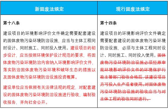 解讀 2017年8月,國務院發布《關于修改〈建設項目環境保護管理條例〉的決定》,取消了竣工環保驗收行政許可,將竣工驗收的主體由環保部門調整為建設單位。2017年11月,原環境保護部發布關于《建設項目竣工環境保護驗收暫行辦法》的公告,規定了建設項目竣工環境保護驗收的程序和內容等,但提出“建設項目需要配套建設水、噪聲或者固體廢物污染防治設施的,新修改的《中華人民共和國水污染防治法》生效實施前或者《中華人民共和國固體廢物污染環境防治法》《中華人民共和國環境噪聲污染防治法》修改完成前,應依法由環境保護部門對建設項目水、噪聲或者固體廢物污染防治設施進行驗收”。 新固廢法明確規定建設單位是固廢污染防治設施的驗收主體,實現了與《建設項目環境保護管理條例》《建設項目竣工環境保護驗收暫行辦法》的銜接。新固廢法施行后,建設項目需要配套建設固廢污染防治設施的,建設單位應當繼續落實“三同時”制度,并對固廢污染防治設施按照《建設項目環境保護管理條例》《建設項目竣工環境保護驗收暫行辦法》的規定進行自主驗收。此外,根據新固廢法的要求,建設單位應當在編制環評文件時將固廢污染防治設施投資概算和固廢污染環境防治措施等納入環評文件中。 2、增加了跨省轉移固廢利用的,需報移出地生態環境主管部門備案的要求