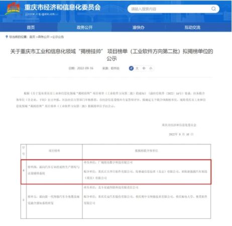 日前,重慶市工業和信息化領域“揭榜掛帥” 項目榜單(工業軟件方向第二批)擬揭榜單位出爐。由廣域銘島數字科技有限公司牽頭打造的“面向汽車行業的柔性生產排程與決策輔助系統”成功入圍,成為重慶市第二批工業軟件“揭榜掛帥”項目。