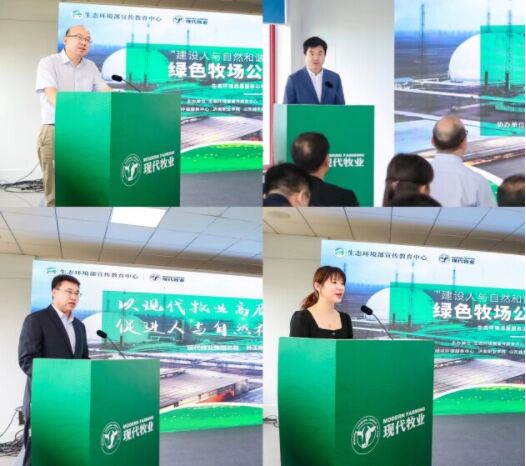 5月28日,“綠色牧場(chǎng)公眾開(kāi)放日活動(dòng)”在現(xiàn)代牧業(yè)商河牧場(chǎng)舉辦。本次活動(dòng)為“建設(shè)人與自然和諧共生的現(xiàn)代化——生態(tài)環(huán)境志愿服務(wù)山東行系列活動(dòng)”的重要部分,由生態(tài)環(huán)境部宣傳教育中心主辦、濟(jì)南市生態(tài)環(huán)境局承辦,濟(jì)南綠塊環(huán)保服務(wù)中心、濟(jì)南職業(yè)學(xué)院、山東城市建設(shè)職業(yè)學(xué)院協(xié)辦,現(xiàn)代牧業(yè)(集團(tuán))有限公司支持。生態(tài)環(huán)境部宣傳教育中心黨委書(shū)記、主任田成川,山東省生態(tài)環(huán)境廳黨組成員、副廳長(zhǎng)、一級(jí)巡視員管言明,山東省濟(jì)南市生態(tài)環(huán)境局黨組書(shū)記、局長(zhǎng)肖紅,山東省濟(jì)南市商河縣委書(shū)記袁長(zhǎng)奎,中國(guó)農(nóng)業(yè)大學(xué)資環(huán)學(xué)院教授、國(guó)家大氣污染防治公關(guān)聯(lián)合中心研究室首席專(zhuān)家劉學(xué)軍,中國(guó)農(nóng)業(yè)大學(xué)工學(xué)院生物能源環(huán)境科學(xué)與技術(shù)實(shí)驗(yàn)室主任董仁杰等出席活動(dòng)。濟(jì)南職業(yè)學(xué)院、山東城市建設(shè)職業(yè)學(xué)院等單位的志愿者代表、相關(guān)領(lǐng)域?qū)<摇⑿袠I(yè)企業(yè)代表等70余人參加活動(dòng)。