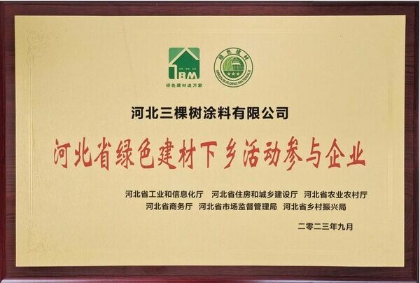 9月20日,由工業(yè)和信息化部、住房和城鄉(xiāng)建設(shè)部、農(nóng)業(yè)農(nóng)村部、商務(wù)部、國(guó)家市場(chǎng)監(jiān)督管理總局、國(guó)家鄉(xiāng)村振興局組織的2023年全國(guó)綠色建材下鄉(xiāng)活動(dòng)(河北站)啟動(dòng)儀式在高碑店市召開(kāi),三棵樹(shù)受邀出席活動(dòng),榮獲由河北省工業(yè)和信息化廳,住房和城鄉(xiāng)建設(shè)廳等部門(mén)聯(lián)合頒發(fā)的首批“參與企業(yè)”授牌,以表彰企業(yè)推動(dòng)綠色建材行業(yè)發(fā)展的突出貢獻(xiàn)。