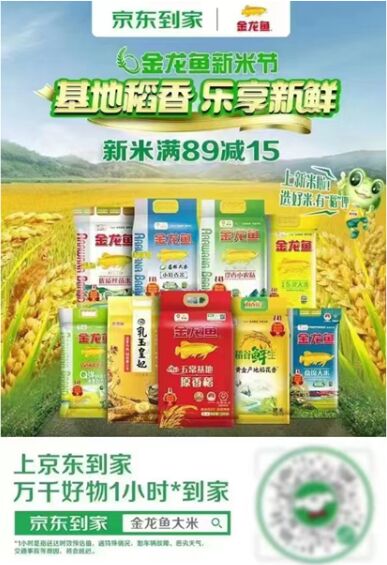 隨著傳統零售業向電商的發展轉變,生鮮電商以其快速的配送速度及優質的服務質量受到了消費者的青睞。金龍魚喊出“基地稻香·樂享新鮮”口號的同時,爭先首發,攜手生鮮電商渠道,將第一波新米從白城工廠收割加工,快速運送到門店,讓老饕客們第一時間嘗到新鮮美味。