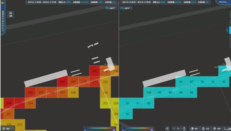 右圖:“靈嗅P1-T”走航監(jiān)測數(shù)據(jù)在“可飛時空大數(shù)據(jù)平臺”的可視化分析