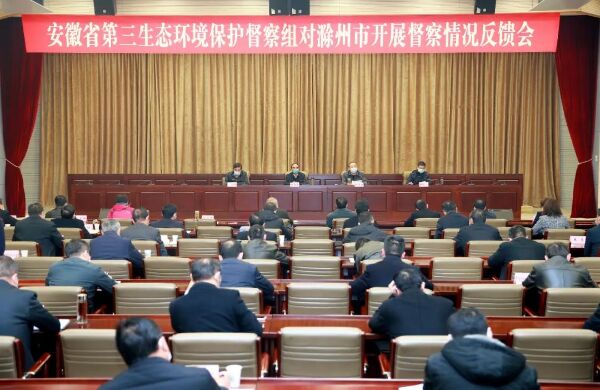 為貫徹落實(shí)省委、省政府關(guān)于生態(tài)環(huán)境保護(hù)督察的重要決策部署,2019年9月23日至10月29日,省第三生態(tài)環(huán)境保護(hù)督察組對滁州市開展了生態(tài)環(huán)境保護(hù)督察,并形成督察意見。經(jīng)省委、省政府批準(zhǔn),3月31日下午,省第三生態(tài)環(huán)境保護(hù)督察組督察滁州市情況反饋會召開。反饋會由許繼偉市長主持,程備久組長通報督察意見,市委書記張祥安作表態(tài)發(fā)言。劉天卓副組長,督察組有關(guān)人員,滁州市委、市政府有關(guān)領(lǐng)導(dǎo)及各有關(guān)部門主要負(fù)責(zé)同志等參加會議。