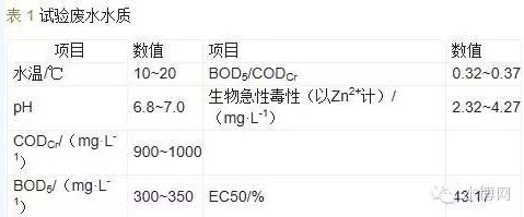 微電解法又稱內電解法、零價鐵法,由于該技術具有適用范圍廣、處理效果好、使用壽命長、成本低廉等優點而得到廣泛應用。同時以廢鐵屑為原料,還具有“以廢治廢”的意義。 微電解法是利用鐵屑中的鐵和炭組分(或另外加入的焦炭、活性炭等)構成原電池,廢水為電解質溶液,以電化學的氧化還原反應為主,同時還伴有混凝吸附、催化氧化、絡合及電沉積等過程,對印染廢水、制藥廢水、焦化廢水等工業廢水具有較好的處理效果。 實際應用中,傳統的鐵炭床在使用一段時間后,會出現鐵屑板結的問題,從而導致填料層發生溝流,使處理效能迅速下降。同時,鐵屑作為陽極不斷消耗,須定期補充,但如何與原有的炭組分充分混合亦是難點。本研究致力于開發新型的微電解材料,既能保證其對工業廢水的良好處理效果,又能有效緩解鐵炭床板結的問題。 本研究以去除廢水的有機物、降低廢水的生物毒性和提高廢水的可生化性為目標,以某化工園區實際廢水為研究對象,通過燒杯實驗,系統考察了微電解材料的鐵炭比、膨潤土含量、添加劑種類和焙燒溫度對廢水處理效果的影響,確定了新型微電解材料的最佳制備方法。在此基礎上,進一步分析了新型微電解材料的結構特性。 1試驗部分 1.1試驗廢水水質 試驗用廢水取自天津市某化工園區,主要水質指標如表1所示。