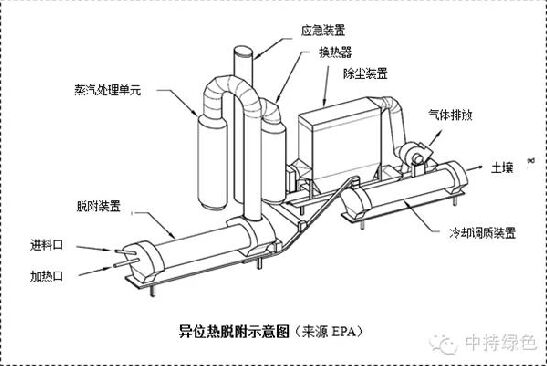 土壤熱脫附技術是指在真空條件下或通入載氣時,經直接或間接加熱,將污染土壤溫度提高至目標污染物沸點以上,采取控制系統溫度和污染土壤停留時間,達到有選擇地促使目標污染物氣化揮發與土壤顆粒分離,進入氣體處理系統被去除的過程。熱脫附主要包含兩個基本過程:一是加熱待處理物質,將目標污染物揮發成氣態與土壤分離的過程;二是將含有目標污染物的尾氣進行冷凝—收集—焚燒等處理至達標后排放的過程。