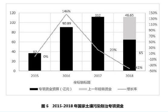 2015-2018年國家土壤污染防治專項資金。資料來源:土壤修復行業2018年度發展報告