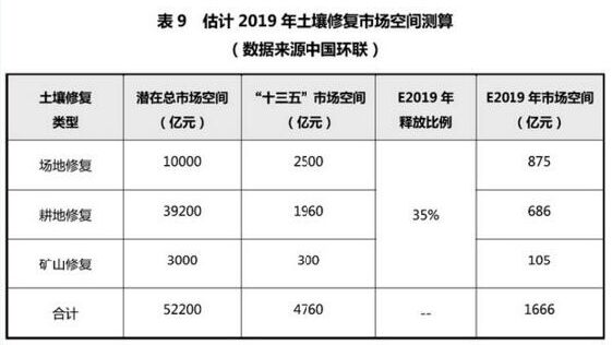 估計2019年土壤修復市場空間測算。資料來源:土壤修復行業2018年度發展報告