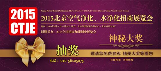 為了活躍經濟,鼓勵創業加盟,鼓勵小規模投資,大力發展加盟連鎖招商產業,2015第六屆中國空氣凈化水凈化及環保家電招商加盟展覽會即將于9月18日到20日在北京國貿國際展覽中心隆重舉辦。本次大會主要針對空氣凈化和凈水行業為廠家提供最佳的合作交流機會,系列大會被公認為行業廠家最佳招商平臺。屆時將有來自全國各地的百余種最新技術及產品現場展示和銷售。大部分產品都是行業頂尖企業的最新創作,在以往產品的基礎上進行了革新和更新,值得期待,值得參觀。 大會即將于明日的早上9點開始對外免費開放。有意參觀的朋友可以持名片現場換取參觀證入場參觀,沒名片的朋友可以通過現場登記后入場免費參觀,整個參觀過程無需任何費用。持名片的朋友可參加現場抽獎活動,獎品價值高達50萬。