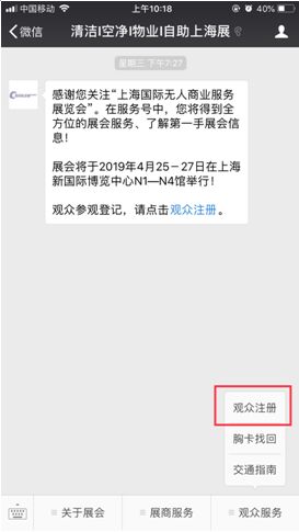 微信觀眾注冊教程: 步驟一:點擊公眾號首頁:參觀登記→觀眾注冊