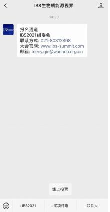 2020 年一場新冠疫情對我國各行各業產生了極大的沖擊,也對生物質能源及有機固廢行業帶來了不小的影響,面對突如其來的新冠疫情,生物質能源及有機固廢行業如何應對上下游產業出現不確定性變化之時變“危”為“機”,如何實現資源高效化利用成為行業聚焦熱點話題。 專注生物質能源及有機固廢資源利用行業,搭建最有價值的榜單 這是一個快速變化的行業,這是一個商機無限的行業,這是一個不斷新生迭代的行業。2021 中國生物質能源及有機固廢資源化利用高峰論壇旨在搭建行業最有借鑒價值的榜單,并表彰在生物質能源及相關領域做出卓越貢獻的企業和個人。為行業發展樹立新的標桿。為技術創新提供優質案例。為商務合作引領新的機遇。 自一月份IBS2021第九屆生物質能源與有機固廢資源化利用高峰論壇正式上線以來,本屆論壇及“興源杯”行業評選受到了行業內眾多企業、專家學者、設計院等多方關注,行業內80余家媒體的全方位報道。經過歷時一個多月的評選報名、資料提交、組委會初審,現正式上線“興源杯”微信投票環節,感謝大家的支持與等待,以下是具體投票規則及投票方式,請大家仔細查閱~ 參與對象 本次資格評審適用于生物質能源行業中的優秀企業、高等院校、研究單位、企業高層領導及技術人才等的積極參與。 評選規則 01 每個微信號一天可同時為不同類別獎項選手投一票(如領軍人物選擇投一票,同時項目案例、最佳企業等不同獎項也可同時選擇投一名選手),每個微信號一天只能提交一次投票,請謹慎提交。 02 評選組委會發現惡意刷票行為,一律取消評選資格,票數作廢。 03 投票時間截止至:2021年04月15日23:59分 獎項評定 第一部分 微信公眾號投票占比率40% 第二部分 專家評審委員會占比率60% 最終獲獎名次結合兩部分投票結果而定。 結果公布 1最終獲獎名單會在2021年5月20日晚IBS2021“興源杯”中國生物質能源與有機固廢資源化利用年度評選頒獎晚宴公布。 2晚宴現場將舉行頒獎儀式,對獲獎單位、個人、團隊等頒發榮譽證書、獎杯及精美禮品! 投票方式 為保證活動真實有效、公平公正進行,請關注“IBS生物質能源視界”公眾號并通過以下方式進行投票~